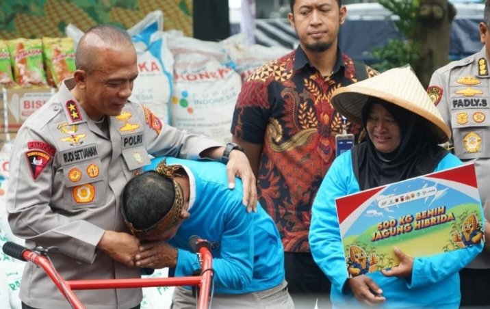 BANDUNG - Suasana haru menyelimuti Mapolda Jawa Barat saat Entin Suhartini, anggota Kelompok Tani Subur Cikalong, Kabupaten Bandung Barat, menerima...