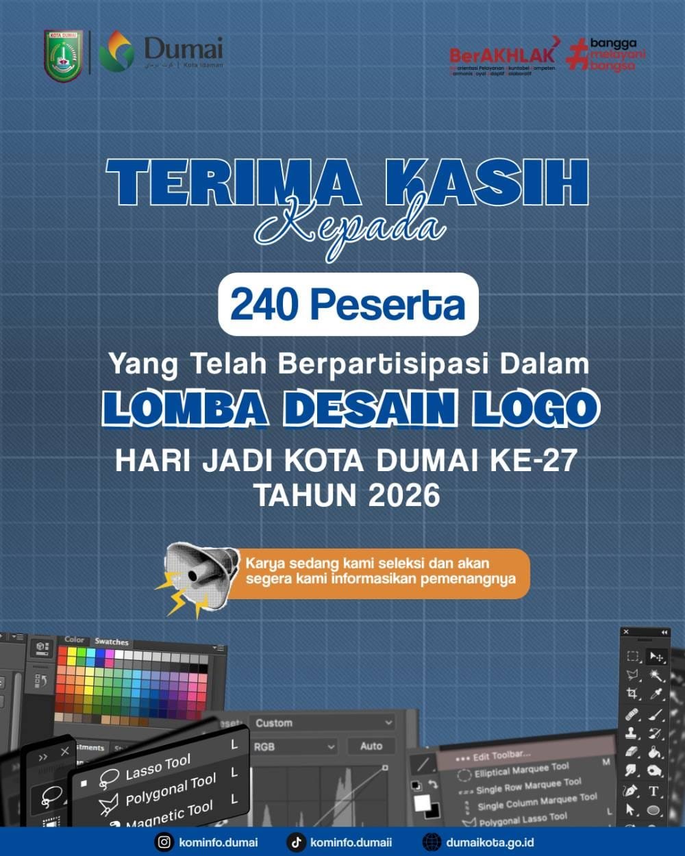 “Antusiasme para desainer dari seluruh Indonesia sangat luar biasa. Tercatat sebanyak 240 peserta berpartisipasi dalam Lomba Desain Logo Hari Jadi Kota Dumai ke-27 tahun ini,” ujar Rikky saat memberikan keterangan kepada Tim Peliput Kominfo Dumai, Rabu (4/3/2026).